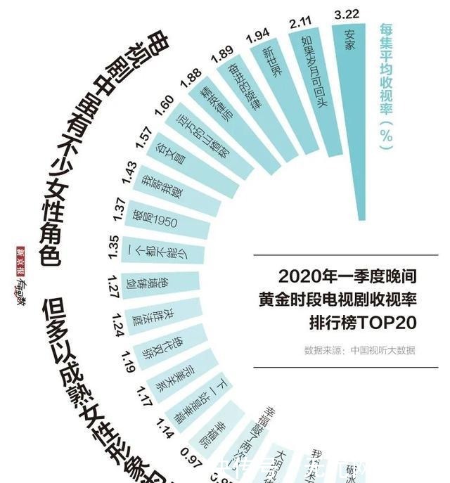 同样,这些黄金时段收视率前二十的电视剧也体现出来,虽然剧中有不少女性角色,但大多都是靠奉献、隐忍来获得认同。